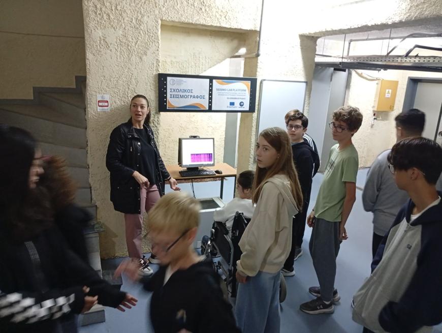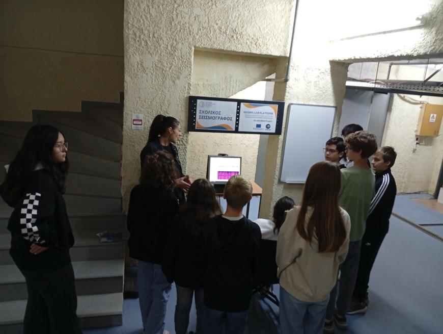 Στη συνέχεια, οι μαθητές επισκέφτηκαν τον χώρο όπου είναι εγκατεστημένος ο σεισμογράφος του σχολείου. Εκεί ενημερώθηκαν για τη χρησιμότητα και τον τρόπο λειτουργίας του, παρατηρώντας πώς καταγράφονται σε πραγματικό χρόνο οι σεισμικές δονήσεις.