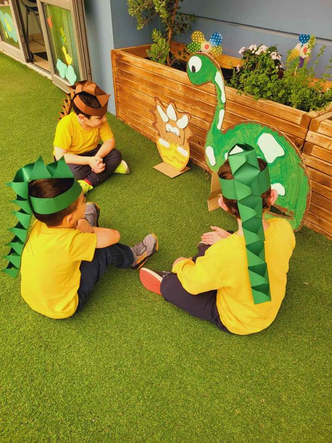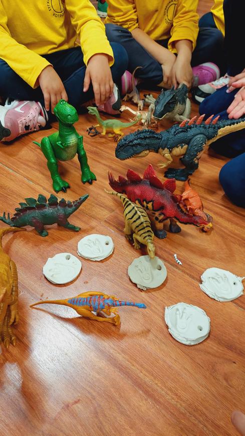 Τι συμβαίνει όταν ένας δεινόσαυρος το σκάει από την Προϊστορία και εμφανίζεται μια μέρα στο σχολείο μας; Πόσα πράγματα έχει να μας πει για την ζωή στην εποχή του; Οι μαθητές/τριες του Νηπιαγωγείου των Σύγχρονων Εκπαιδευτηρίων Κοτρώνη ταξίδεψαν πίσω στον χρόνο για να συναντήσουν …τους δεινόσαυρους! Γνώρισαν τα μέρη όπου έζησαν, τις τροφές που προτιμούσαν, τα ονόματά τους ανάλογα με τη μορφή τους και φυσικά έμαθαν γιατί αυτά τα γιγάντια πλάσματα μια μέρα εξαφανίστηκαν. Με διασκεδαστικά παιχνίδια και πολύχρωμες κατασκευές γέμισε η τάξη ολόκληρη την εβδομάδα και με μια επίσκεψη στο εργαστήριο αρχαιολογίας και τέχνης Archaeolab έκλεισε ο κύκλος των δεινοσαύρων. Στο εργαστήριο που επισκέφθηκαν, οι μαθητές/τριες μεταμορφώθηκαν σε μικρούς/ες παλαιοντολόγους και ανακάλυψαν απολιθώματα δεινοσαύρων και κατασκεύασαν τον δικό τους αγαπημένο δεινόσαυρο. Τέλος με το πτυχίο του παλαιοντολόγου στο χέρι αποχαιρέτησαν την Προϊστορία και υποσχέθηκαν για τους δεινόσαυρους να πουν σε όλους μας μια ιστορία!