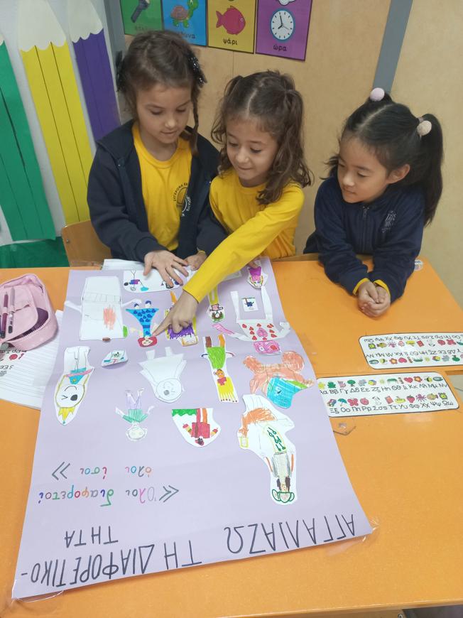 Στο σχολείο μας τα παιδιά αγκαλιάζουν την ετερότητα μαθαίνοντας πως όλοι μας είμαστε μοναδικοί, αλλά ταυτόχρονα και ίσοι. Στο πλαίσιο του μαθήματος του Εργαστηρίου Δεξιοτήτων, οι μαθητές και μαθήτριες της Α΄ Δημοτικού υλοποίησαν ένα όμορφο project για τη διαφορετικότητα. Κάθε παιδί δημιούργησε με τη φαντασία του έναν φανταστικό φίλο, που θα μπορούσε να είναι μέλος της ομάδας της τάξης και που τουλάχιστον ως προς την εμφάνιση διαφέρει από τα υπόλοιπα παιδιά. Ένα παιδί με πολύχρωμα μαλλιά, ένα καθισμένο σε αναπηρικό αμαξίδιο, ένα αγόρι πολύ ψηλό ή ένα κορίτσι με απώλεια όρασης. Μπορούν όλοι αυτοί να συνυπάρξουν στον ίδιο χώρο;