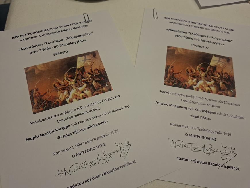 Συγχαίρουμε θερμά όλους τους μαθητές που συμμετείχαν, τους μαθητές που διακρίθηκαν, καθώς και τους εκπαιδευτικούς που διαρκώς στηρίζουν και καλλιεργούν τη φιλολογική και ιστορική τους ευαισθησία, τιμώντας έμπρακτα τις αξίες της παιδείας και του πολιτισμού.