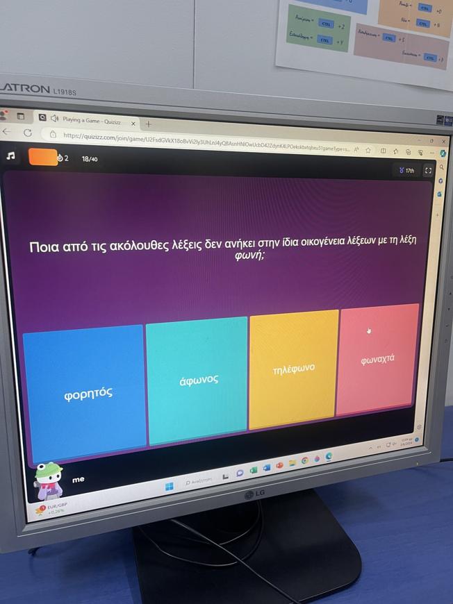 Το σχολείο μας ενθαρρύνει τη συμμετοχή των μαθητών/τριων σε διαγωνισμούς και μάλιστα με παράλληλη ενίσχυση των ψηφιακών δεξιοτήτων. Ως εκ τούτου ο διαγωνισμός υλοποιήθηκε με την αξιοποίηση των νέων τεχνολογιών και συγκεκριμένα του ηλεκτρονικού υπολογιστή. Οι μαθητές και οι μαθήτριές μας, με παιγνιώδη τρόπο, συμπλήρωσαν τις ερωτήσεις των κουίζ και είχαν την ευκαιρία να λάβουν ανατροφοδότηση για τα λάθη τους μέσω της εκπαιδευτικής ηλεκτρονικής πλατφόρμας που χρησιμοποιήθηκε.