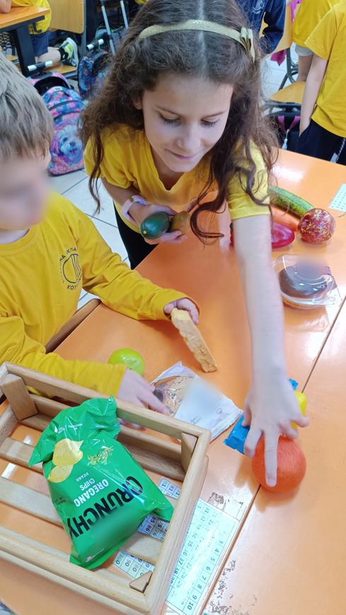 Στη συνέχεια, οι μαθητές μας συμμετείχαν σε ένα εκπαιδευτικό παιχνίδι, όπου κλήθηκαν να ξεχωρίσουν τα υγιεινά από τα ανθυγιεινά τρόφιμα. Το παιχνίδι αυτό ήταν ευχάριστο και βοήθησε τα παιδιά να κατανοήσουν καλύτερα τις σωστές διατροφικές επιλογές.