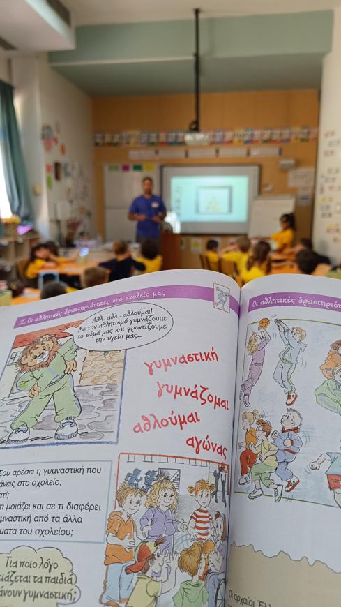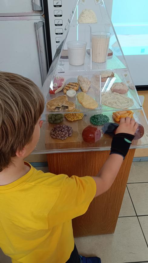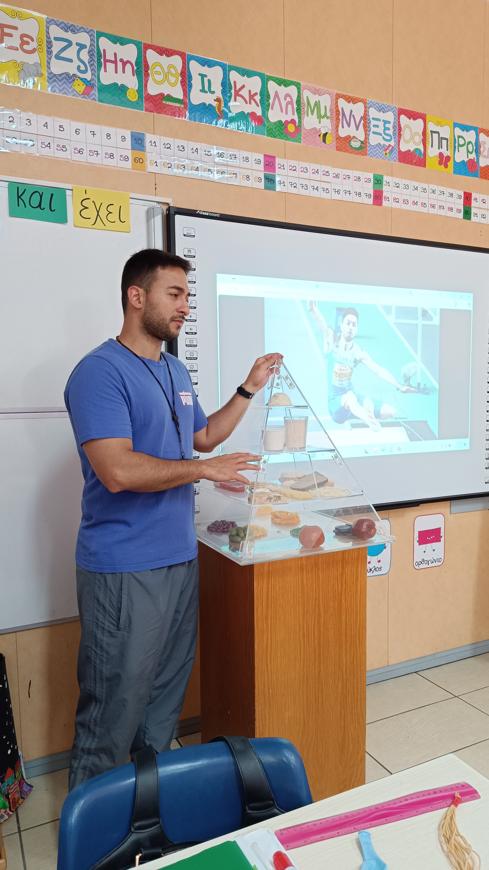 Για να μάθουμε περισσότερα, καλέσαμε στην τάξη μας τον γυμναστή του σχολείου μας, τον κύριο Αγγελόπουλο. Ο κύριος Αγγελόπουλος μίλησε στα παιδιά για τη σημασία της ισορροπημένης διατροφής και της άσκησης. Εξήγησε τι είναι η διατροφική πυραμίδα και πώς αυτή μας βοηθά να καταλαβαίνουμε ποιες τροφές πρέπει να τρώμε συχνά και ποιες να αποφεύγουμε.