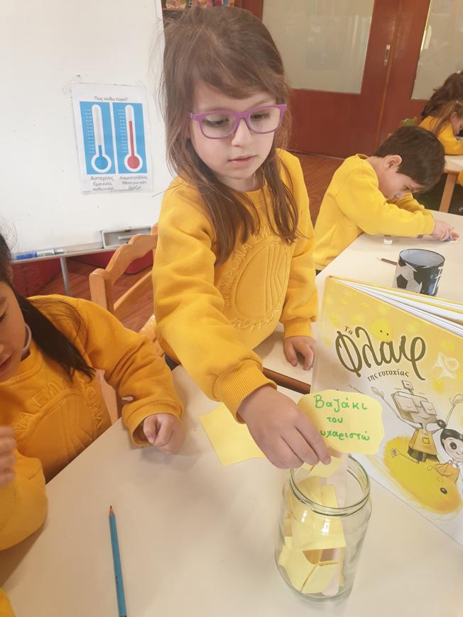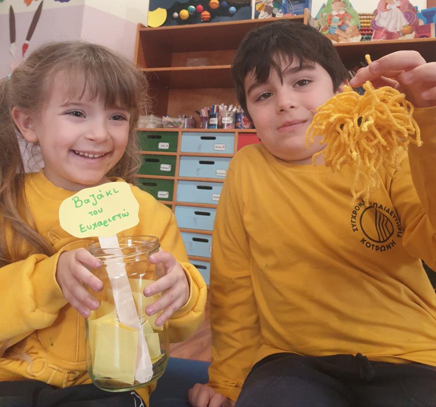 Μικρά, χνουδωτά, φωτεινά, χαρούμενα Φλαφ εμφανίζονται στην τάξη του νηπιαγωγείου των Σύγχρονων Εκπαιδευτηρίων Κοτρώνη και αναστατώνουν τους μικρούς μαθητές. Αν τα πιάσεις, λένε πως σου φέρνουν πραγματική ευτυχία, μπορείς να τη νιώσεις όμως; Μέσα από το βιβλίο της συγγραφέως Μ. Γιώτη, οι μαθητές ταξίδεψαν με τις μαγικές λέξεις “ ευχαριστώ” και “ευγνωμοσύνη”. Παιχνίδια με τα Φλάφ και το βαζάκι του ευχαριστώ και παιχνίδια με τις μυστικές λέξεις ευγνωμοσύνης βοήθησαν τα παιδιά να ανακαλύψουν πόσους λόγους έχουμε καθημερινά να είμαστε χαρούμενοι και πόσο σημαντικό είναι να μπορούμε να λέμε “ ευχαριστώ”. Έτσι θα νιώθουμε ικανοποιημένοι στο σήμερα και θα μπορούμε να κοιτάμε με αισιοδοξία το αύριο!
