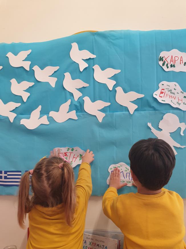 Συζήτησαν για την ειρήνη και τη φιλία, ζωγράφισαν περιστέρια 🕊️ και σημαίες και έφτιαξαν μικρές δημιουργίες γεμάτες χρώματα και συναισθήματα. 🎨