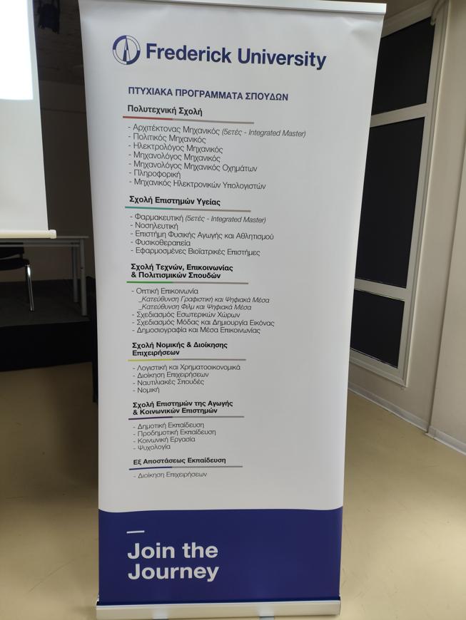 Ευχαριστούμε θερμά τους εκπροσώπους του Πανεπιστημίου Frederick κ. Αφροδίτη Λυμπέρη καθώς και τον κ. Κλέαρχο Χαραλάμπους, Διευθυντή Γραφείου Αθήνας για την επίσκεψη, την ουσιαστική ενημέρωση που προσέφεραν στους μαθητές μας καθώς και την προσφορά της υποτροφίας.