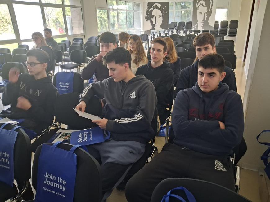 Κατά τη διάρκεια της επίσκεψης, οι εκπρόσωποι του Πανεπιστημίου Frederick παρουσίασαν στους μαθητές σημαντικές πληροφορίες σχετικά με τα προγράμματα σπουδών, τις σχολές, τις επαγγελματικές προοπτικές, καθώς και τη φοιτητική ζωή στο Πανεπιστήμιο Frederick. Οι μαθητές είχαν την ευκαιρία να θέσουν ερωτήσεις, να εκφράσουν απορίες και να ενημερωθούν υπεύθυνα για τις επιλογές που έχουν μετά την αποφοίτησή τους.