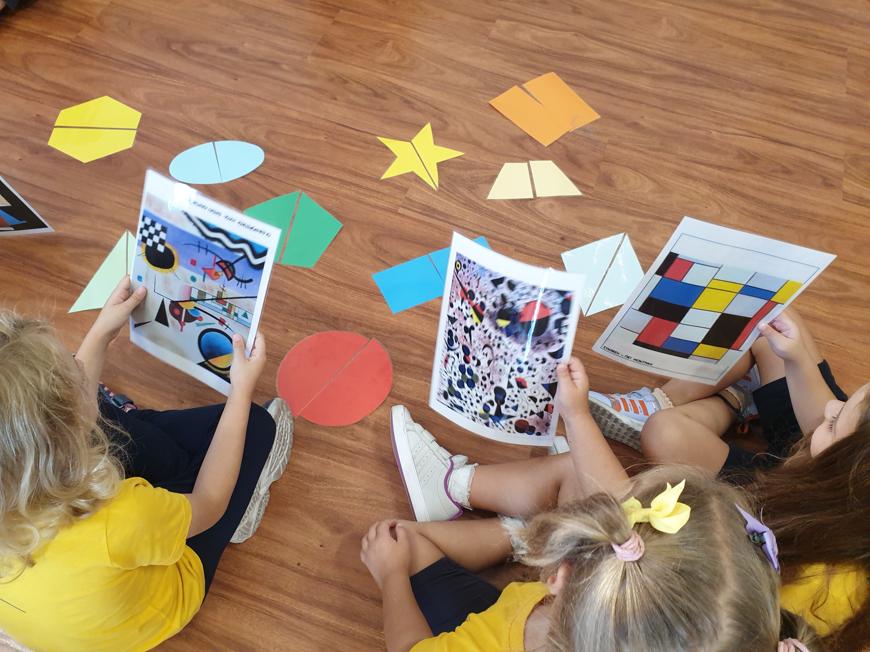Την εβδομάδα που πέρασε οι μαθητές/ήτριες του Νηπιαγωγείου των Σύγχρονων Εκπαιδευτηρίων Κοτρώνη γέμισαν την τάξη τους χρώματα, έκαναν αναμείξεις, πειραματίστηκαν με διάφορα υλικά και  έπαιξαν ευφάνταστα παιχνίδια. Ανάμεσα σε κύκλους, τρίγωνα και ρόμβους ανακάλυψαν πως ο κόσμος μας είναι γεμάτος σχήματα.  Γνώρισαν διάσημους ζωγράφους, ακολούθησαν την τεχνική του Μοντριάν και του Καντίνσκι και με λίγο κέφι και αρκετή φαντασία μεταμορφώθηκαν  και αυτοί/ές  σε  μικρούς/ές ζωγράφους εκθέτοντας τα έργα τους με περηφάνια.