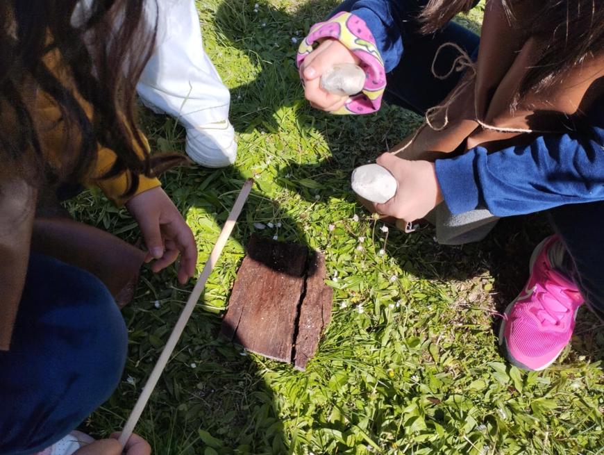 Κάποιοι έγιναν “κυνηγοί”, άλλοι “συλλέκτες” κι όλοι μαζί συνεργάστηκαν, γέλασαν και έπλασαν με τα χέρια τους μια μικρή κοινότητα ανθρώπων των σπηλαίων. Το πιο αστείο; Όταν ανακαλύψαμε ότι το να ανάψεις φωτιά χωρίς αναπτήρα δεν είναι καθόλου εύκολη υπόθεση… Η εμπειρία αυτή τους έδωσε την ευκαιρία να κατανοήσουν καλύτερα το παρελθόν μέσα από τη δράση και τη δημιουργικότητα.
