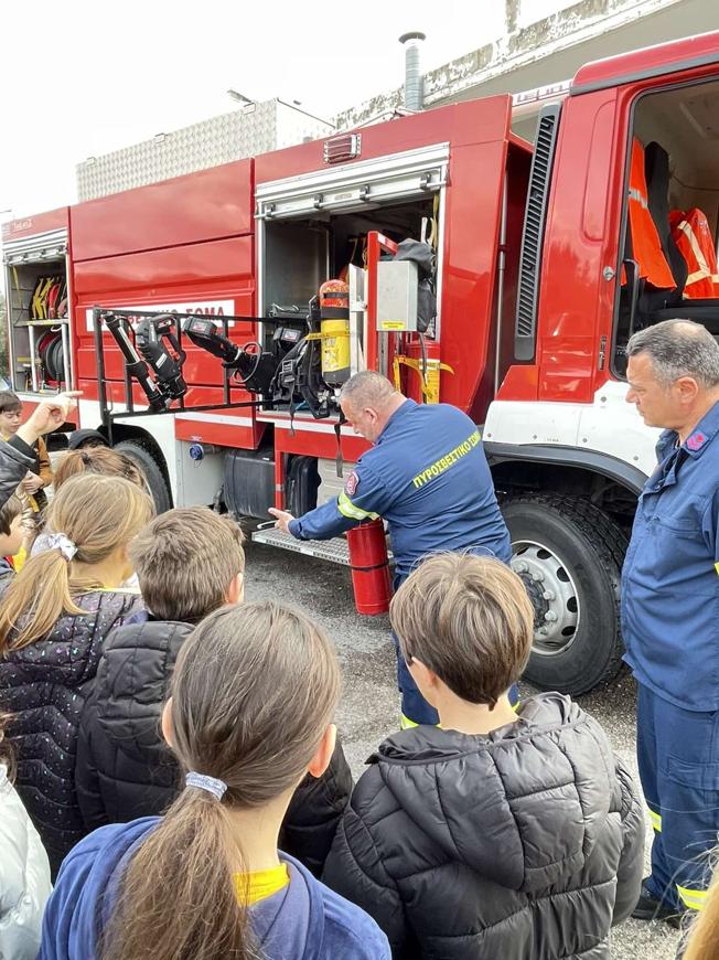 Η εκπαιδευτική εμπειρία ολοκληρώθηκε με βιωματική μάθηση, κατά την οποία οι μαθητές ήρθαν σε άμεση επαφή με τον εξοπλισμό, τα εργαλεία και το πυροσβεστικό όχημα, συνειδητοποιώντας στην πράξη το σπουδαίο και απαιτητικό έργο των πυροσβεστών.