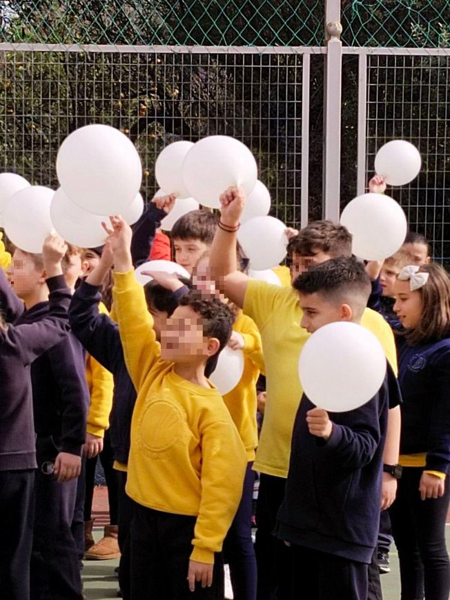 Η εβδομάδα ολοκληρώθηκε με μια συμβολική δράση στο προαύλιο του σχολείου μας. Με χαμόγελα και ενθουσιασμό, οι μαθητές και οι μαθήτριες όλων των τάξεων συμμετείχαν στην Πανελλήνια Δράση «Μπαίνω στη θέση του άλλου και λέω όχι στη βία και στον εκφοβισμό», του Πανεπιστημίου Ιωαννίνων, σπάζοντας όλοι μαζί τα μπαλόνια τους και στέλνοντας το μήνυμα ότι στο σχολείο μας δεν υπάρχει χώρος για τη βία και τον εκφοβισμό. Υπάρχει μόνο χώρος για φιλία, καλοσύνη και σεβασμό.