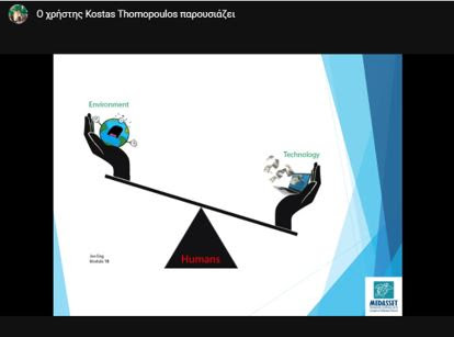 Σήμερα 3 Μαρτίου, Παγκόσμια Ημέρα Άγριας Ζωής, συναντηθήκαμε διαδικτυακά με τον υπεύθυνο εκπαιδευτικών προγραμμάτων στο MEDASSET κ. Κώστα Θωμόπουλο και την συνεργάτιδα/εθελόντρια στο MEDASSET κ. Λυδία Παπαγεωργίου. Συζητήσαμε για την τεχνολογία και την σχέση της με το περιβάλλον και διαπιστώσαμε ότι ένα ρομπότ μπορεί να βοηθήσει στην επίλυση του προβλήματος των θαλάσσιων απορριμμάτων, από τα οποία κινδυνεύουν κάθε χρόνο πολλά θαλάσσια είδη, ανάμεσά τους και η θαλάσσια χελώνα.