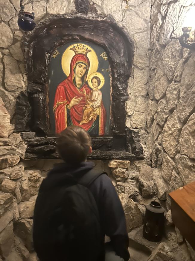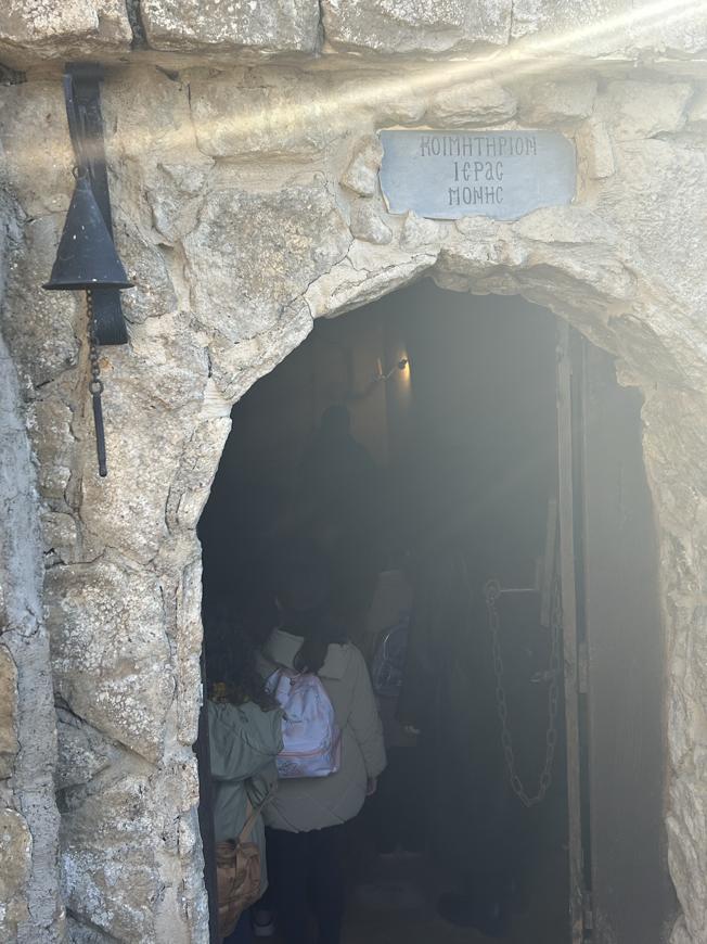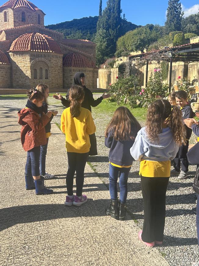 Αρχικά, οι μαθητές περιηγήθηκαν στους χώρους της Μονής και έμαθαν την ιστορία ανέγερσής της. Σημείο αναφοράς της επίσκεψης αποτέλεσε το πέρασμα από ένα σπουδαίο τμήμα της Μονής, το Κοιμητήριό της, το οποίο κατασκευάστηκε υπό μορφή αρχαίας κατακόμβης. Εκεί, οι μαθητές παρατήρησαν με προσοχή τα πρωτοχριστιανικά σύμβολα, καθώς και τις ξεχωριστές τοιχογραφίες. Τέλος, η επίσκεψη ολοκληρώθηκε με κέρασμα, ενώ οι μαθητές με τη βοήθεια της Ηγουμένης συνειδητοποίησαν τη σημασία της προσφοράς και της αλληλεγγύης.