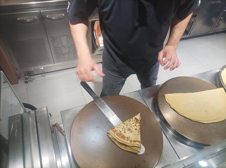 Στο σχολείο μας λοιπόν, οι μαθητές και οι μαθήτριες του γαλλικού τμήματος και των δύο βαθμίδων εργάστηκαν βιωματικά πάνω στο θέμα της Chandeleur. Διδάχθηκαν το λεξιλόγιο, αναζήτησαν πληροφορίες στο διαδίκτυο για το έθιμο αλλά και τη συνταγή της γαλλικής κρέπας! Τα παιδιά του Δημοτικού μπήκαν στην κουζίνα του σχολείου, εκεί όπου παρασκευάσαν και στη συνέχεια γεύτηκαν τις δικές τους γλυκιές κρέπες, ενώ τα παιδιά του Γυμνασίου επισκέφθηκαν κρεπερί της πόλης μας. Εκεί είδαν από κοντά την παρασκευή του αγαπημένου εδέσματος μικρών και μεγάλων και φυσικά δοκίμασαν την κρέπα της επιλογής τους τιμώντας με αυτόν τον τρόπο το γαλλικό έθιμο, το οποίο αποτελεί βασικό στοιχείο του πολιτισμού των Γάλλων.